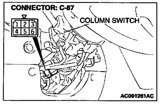 connector C-87 without removing the ignition switch and steering lock cylinder. Then check the continuity.