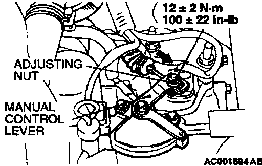 2. Loosen the control cable to the manual control lever coupling nut to free the cable and lever.