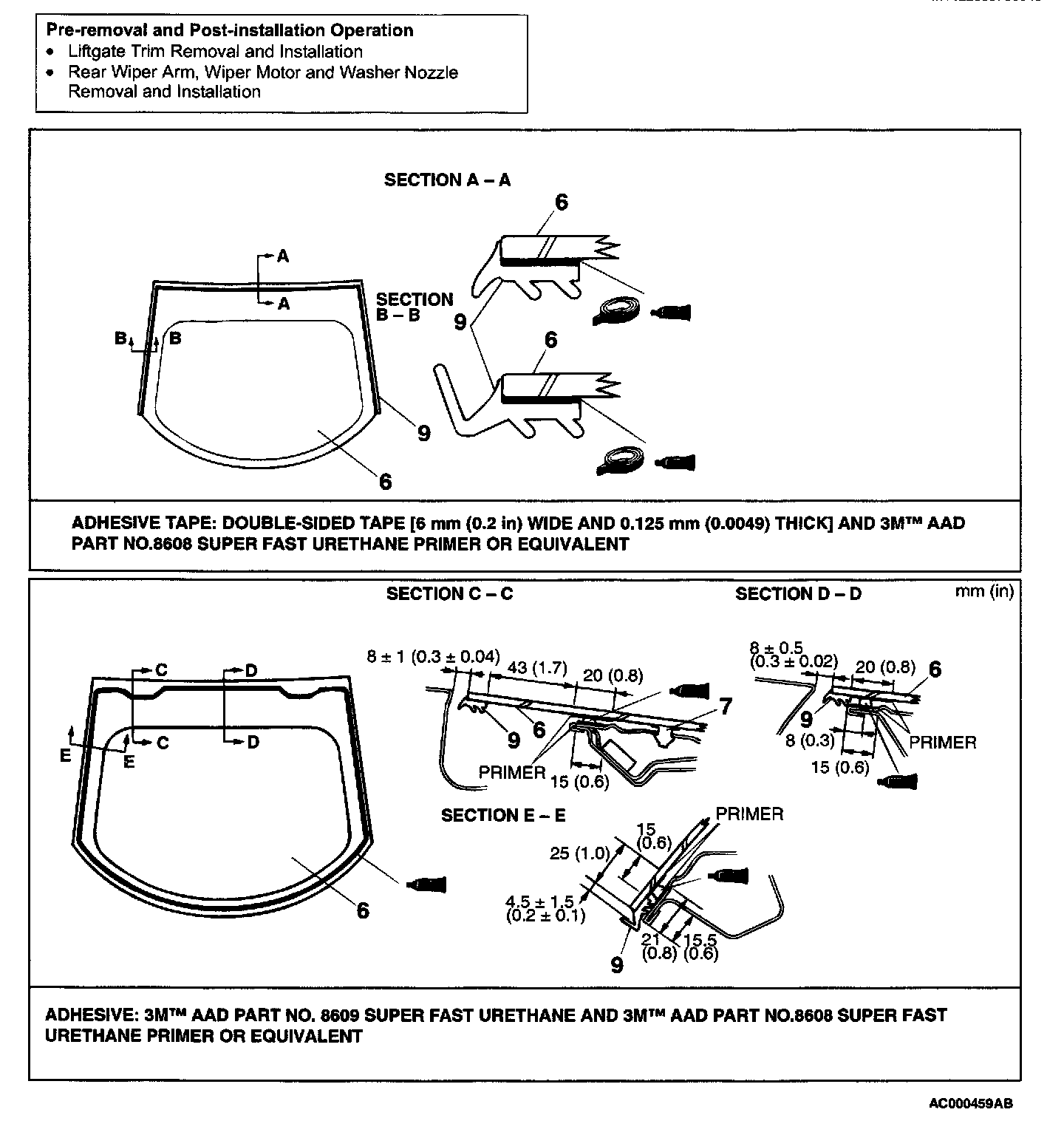 1. Use 3M(TM) AAD Part number 8906 or equivalent, to degrease the inside and outside edges of the liftgate window glass and the surface of the body flange.