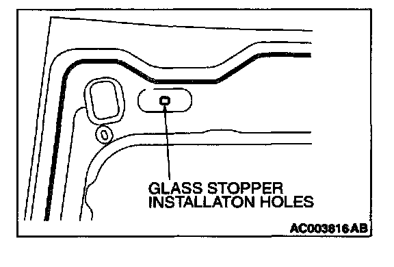 3. Install glass stopper on liftgate window glass at the same place as glass stopper is installed on body flange