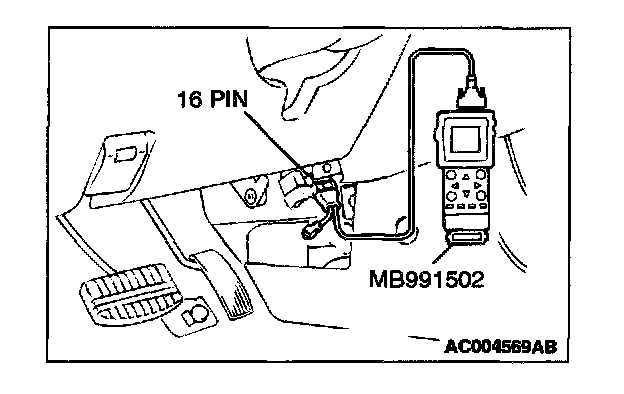 CAUTION: To prevent damage to scan tool MB991502, always turn the Ignition switch to "LOCK" (OFF) position before connecting or disconnecting scan tool MB991502.