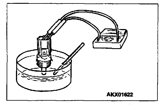 2. With the temperature sensing portion of engine coolant temperature sensor immersed in hot water, check the resistance.
