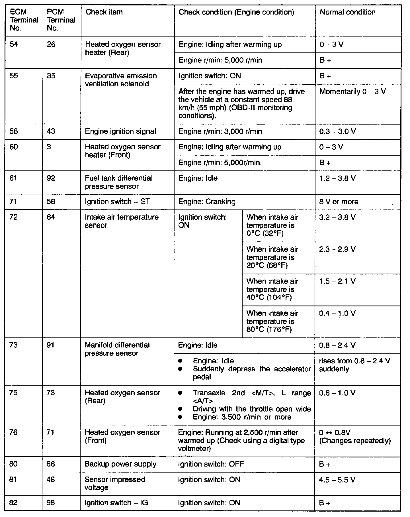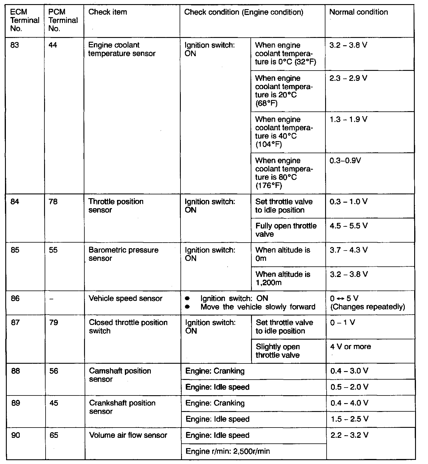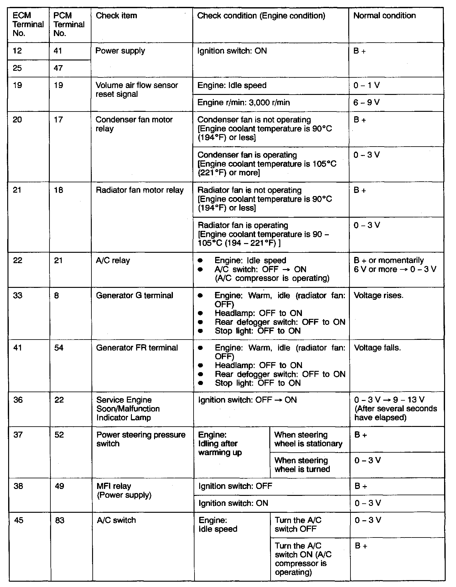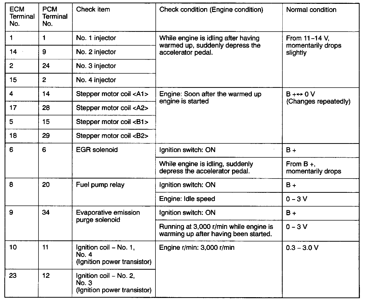 PCM Connector Terminal Arrangement: