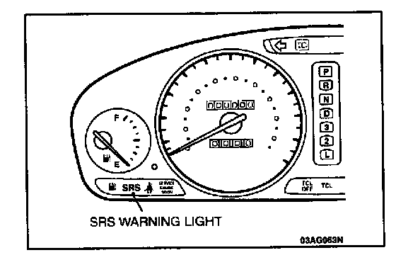 2. Does the "SRS" warning light illuminate for about 7 seconds, and then remain off for at least 5 seconds after turning off?
