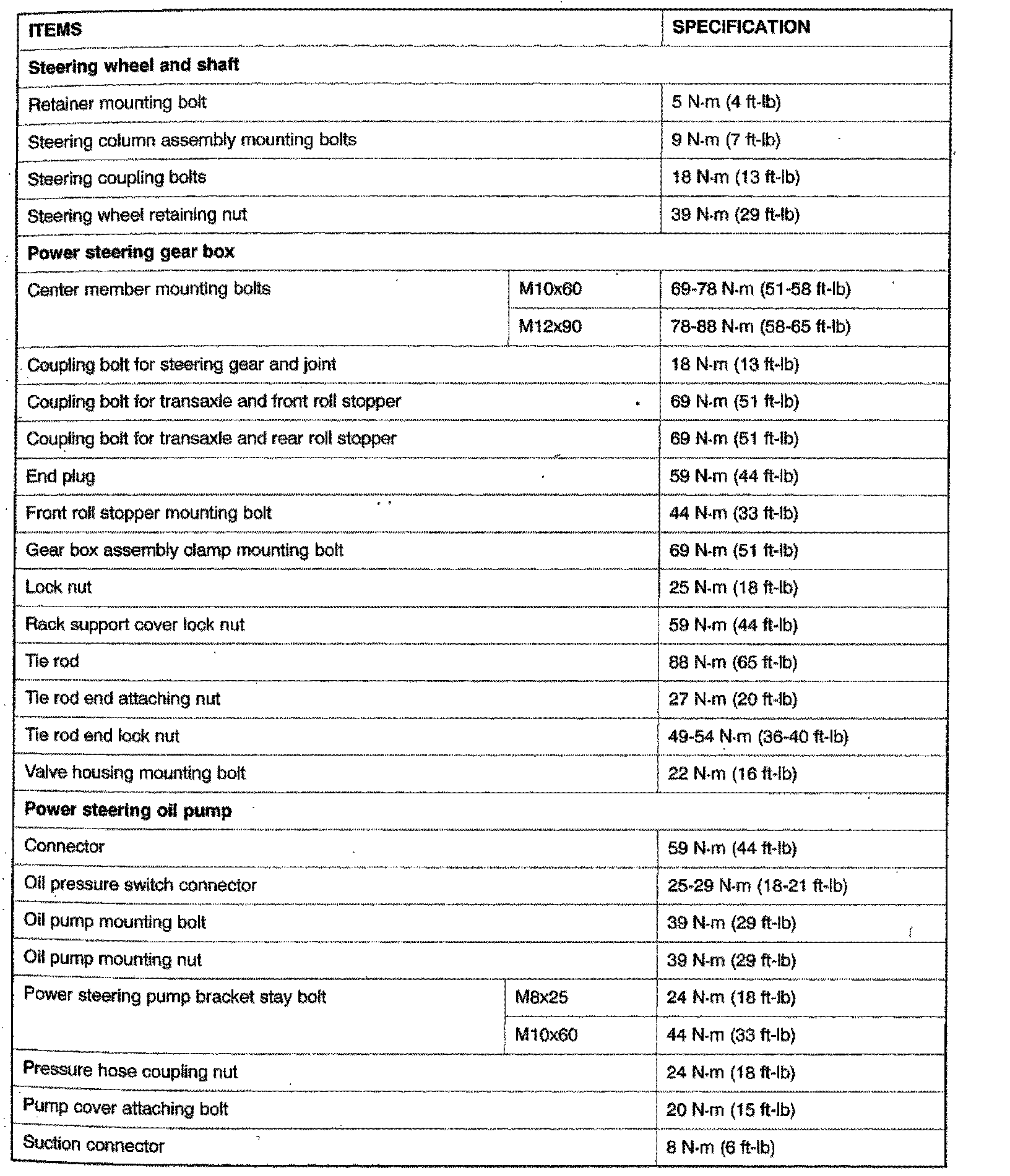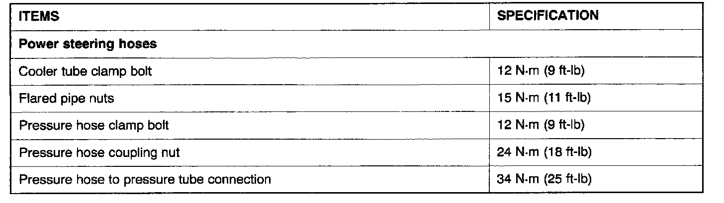 Power Steering Tightening Specifications