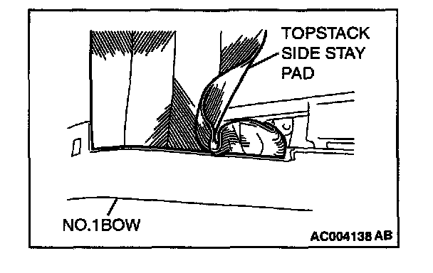 3. Pull out the folded end of the topstack side stay, and disconnect the topstack side stay pad from the No.1 bow.
