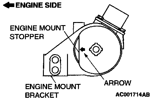 Clamp the engine mount stopper so that the arrow points in the direction as shown in the diagram.