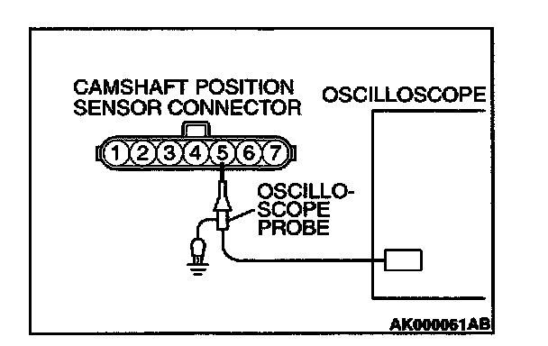 2. Connect the oscilloscope probe to camshaft position sensor connector terminal 5.