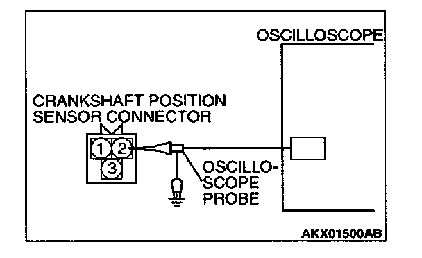 4. Connect the oscilloscope probe to crankshaft position sensor connector terminal 2 (black clip of special tool).