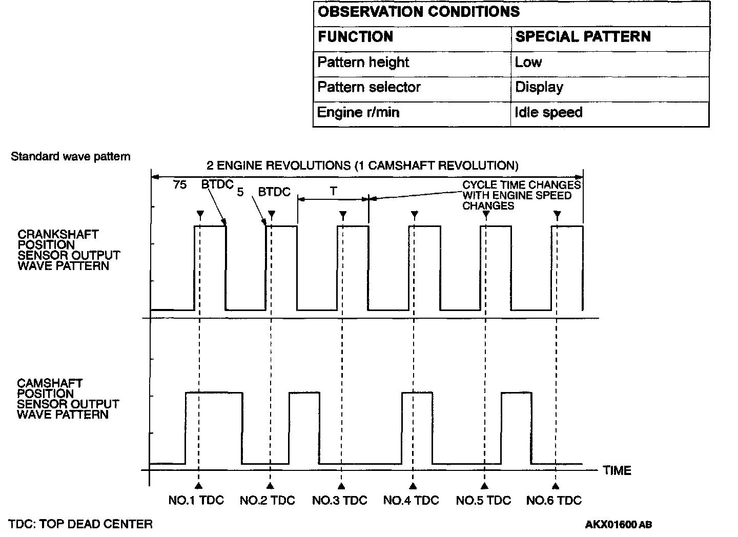 1. Check that cycle time T becomes shorter when the engine speed increased.