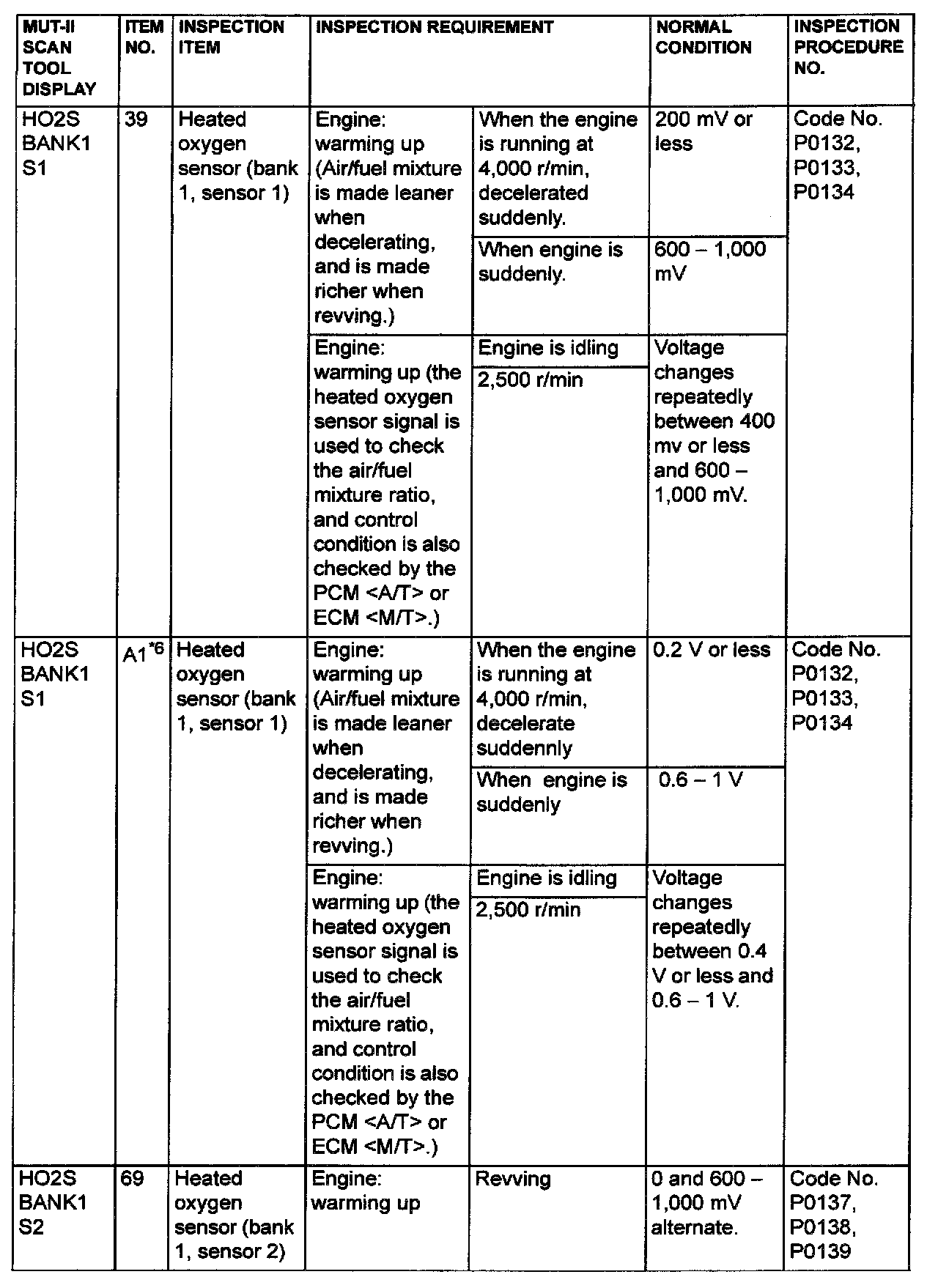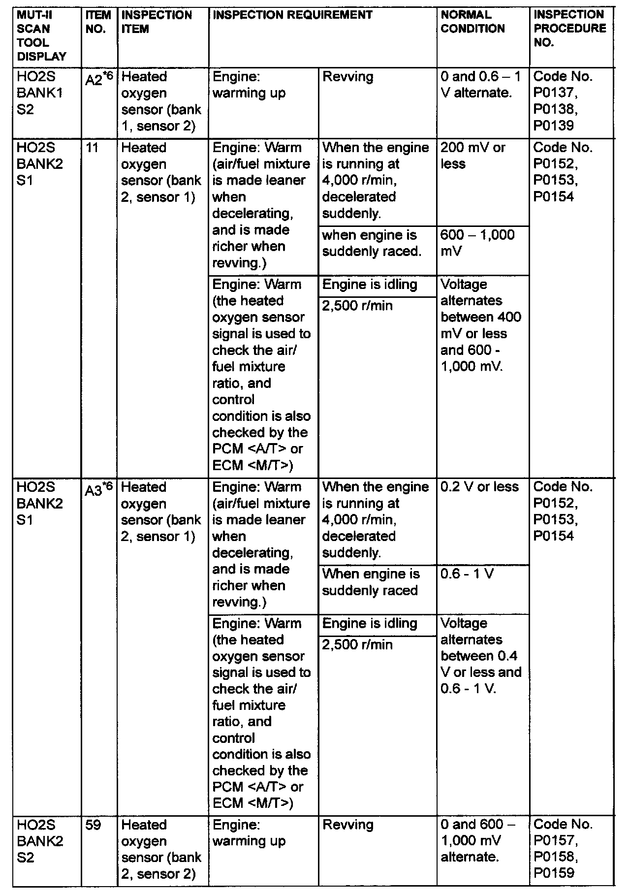 NOTE: Sensor 1 indicates the sensor mounted at a position closest to the engine, and sensor 2 indicates the sensor mounted at the position second close to the engine.