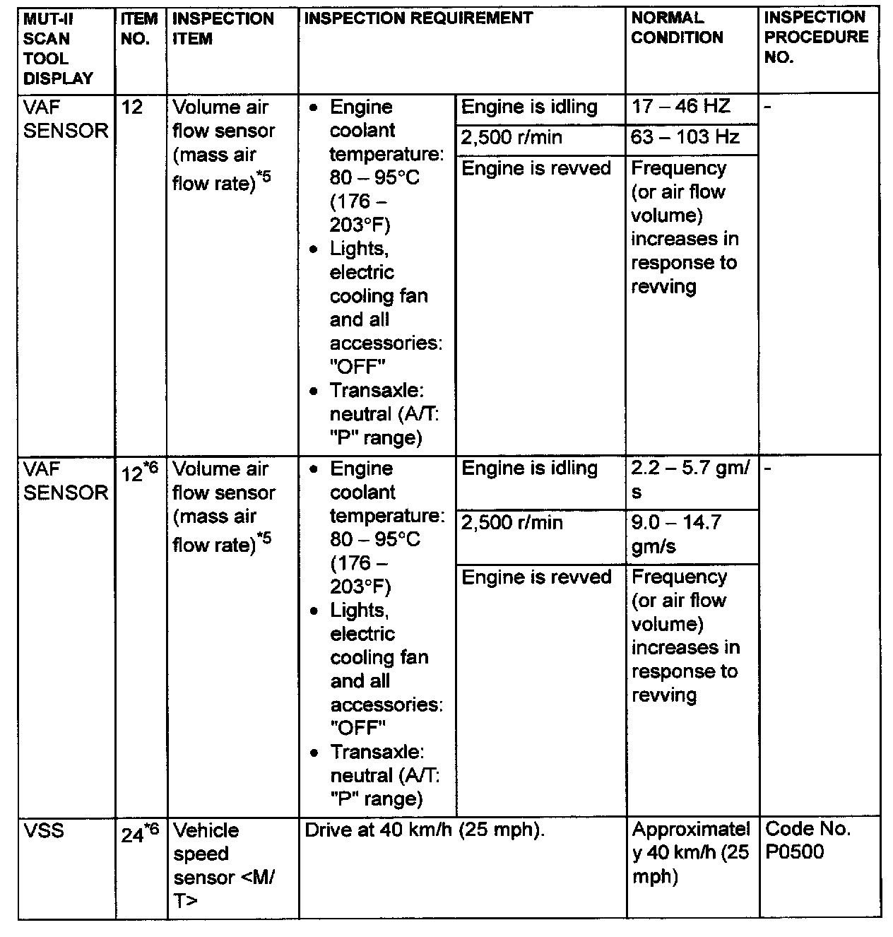 NOTE: *5: In a new vehicle [driven approximately 500 km (311 mile) or less], the volume airflow sensor output frequency is sometimes 10% higher than the standard frequency.