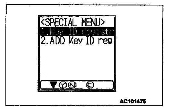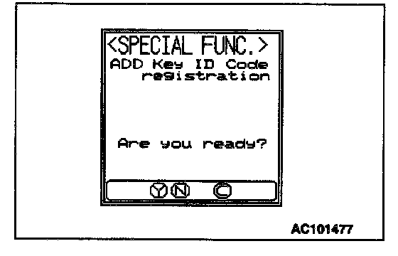 NOTE: Using the key ID register function will cause all key IDs that have been previously registered in the immobilizer-ECU to be erased. All keys need to be registered. Those which have been registered before should be on hand before using this function.