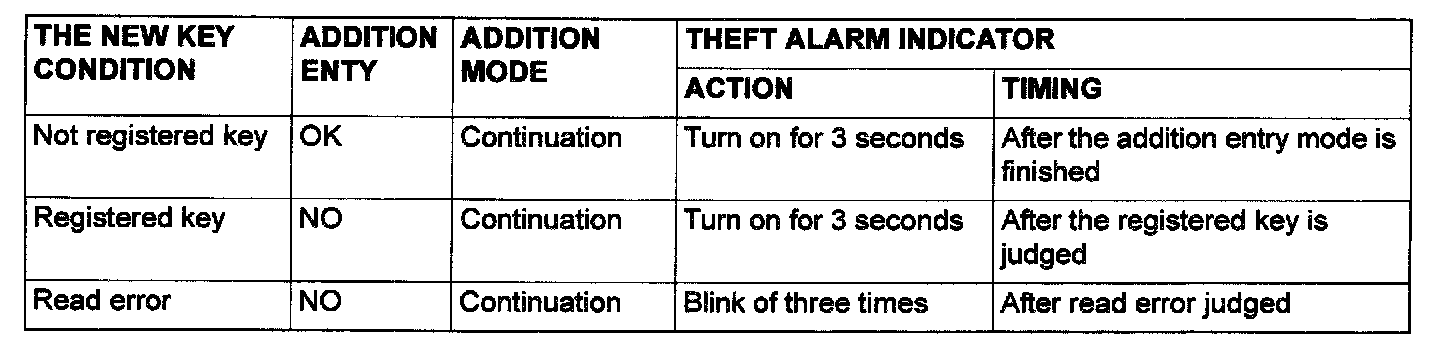 6. The time which the key can be registered is limited less than 30 seconds after the theft alarm indicator blinks.