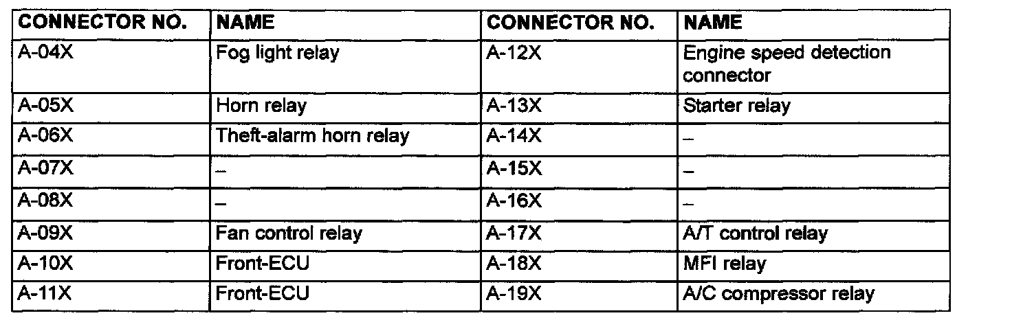 Centralized Relay A-04X - A-19X (Relay Box In Engine Compartment):