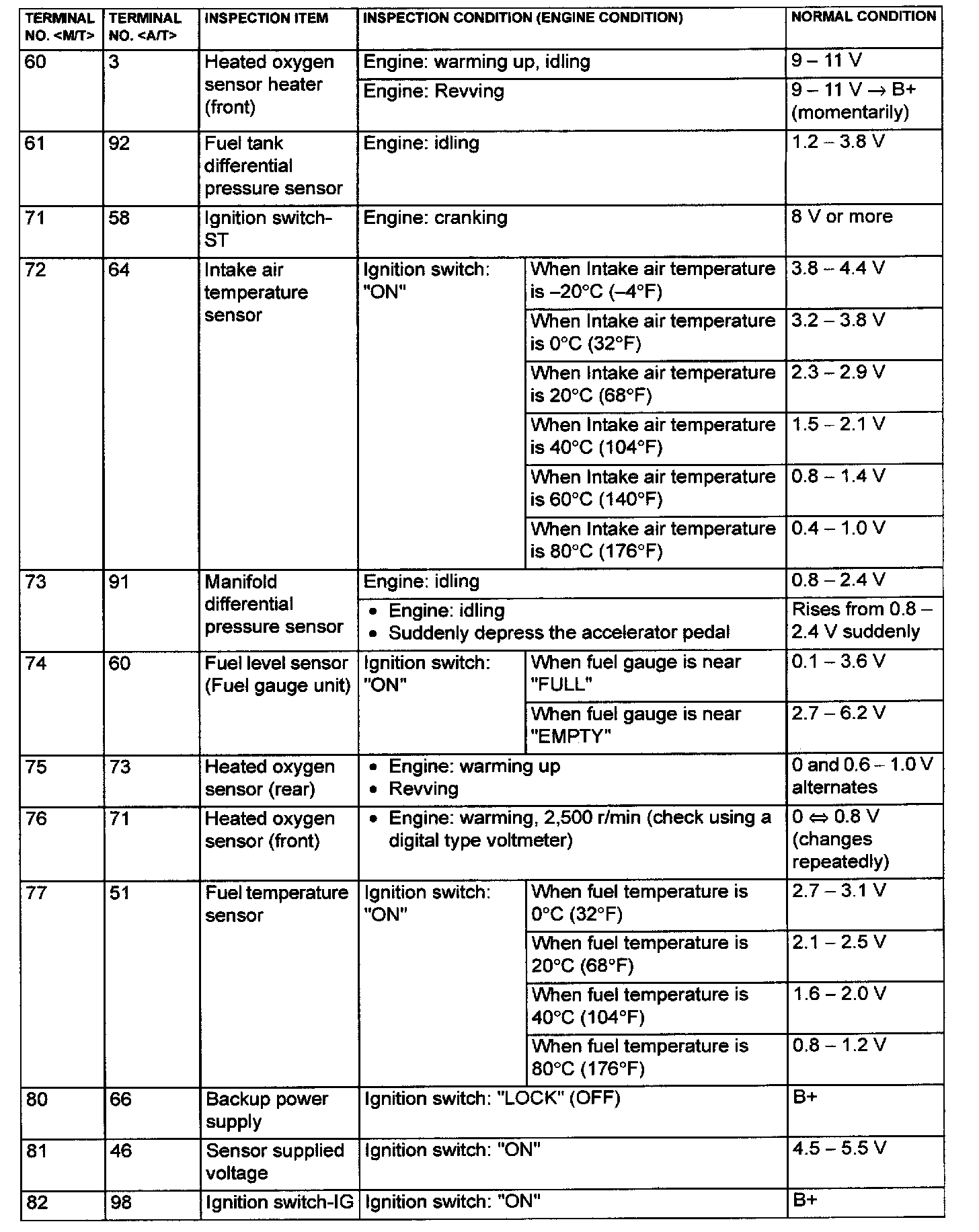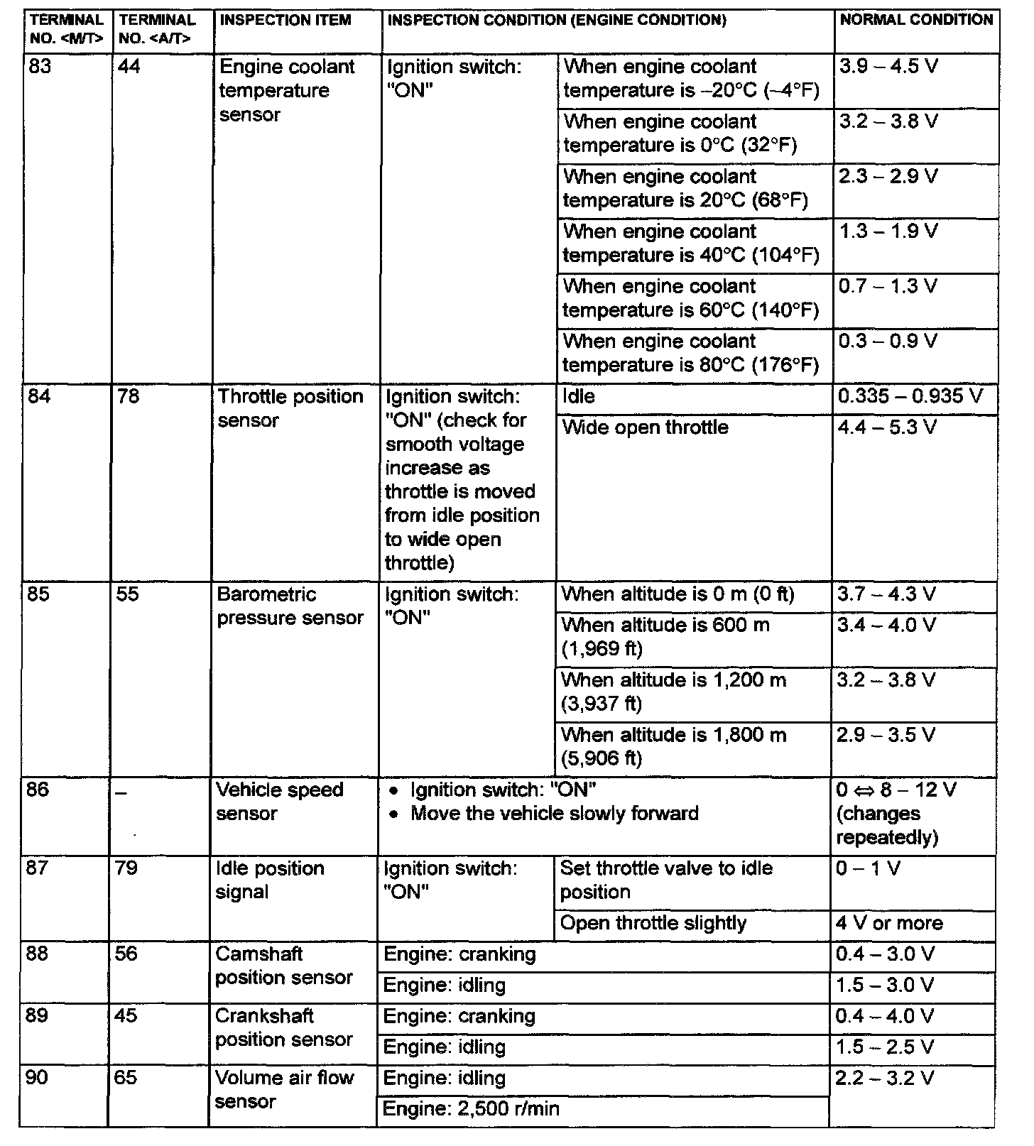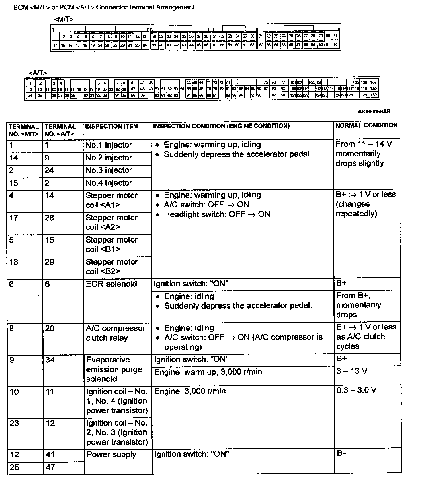 ECM (M/T) / PCM (A/T) Connector Terminal Arrangement And Terminals Part 1: