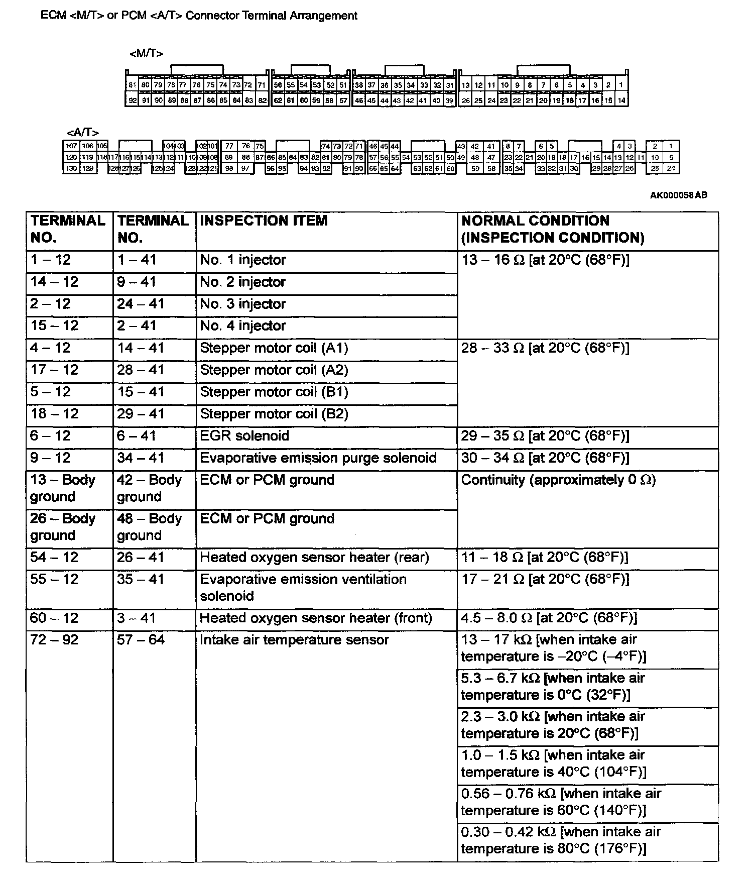 ECM (M/) / PCM (A/T) Connector Terminal Arrangement And Terminals Part 1: