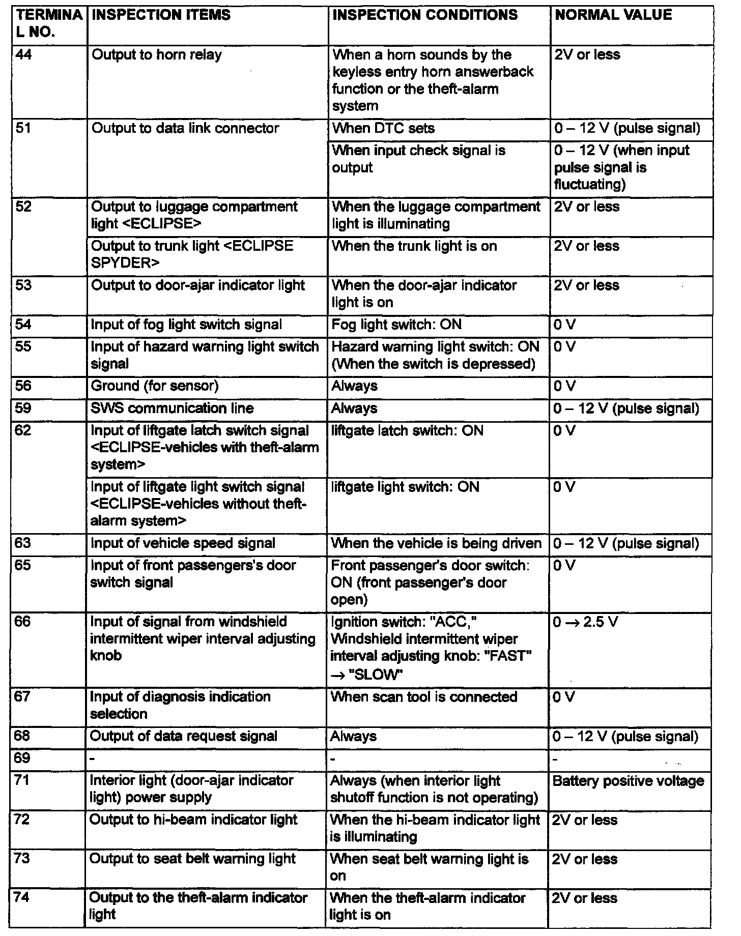 ETACS-ECU Terminal No: 44 - 74 Part 3: