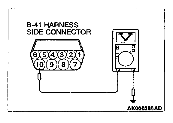 1. Disconnect the connector B-41 and measure at the harness side.