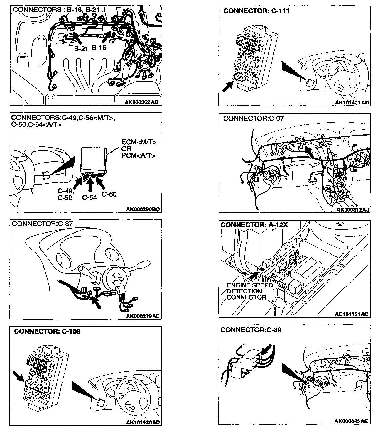 STEP 9. Check connector A-12X at engine speed detection and connector C-56 at ECM