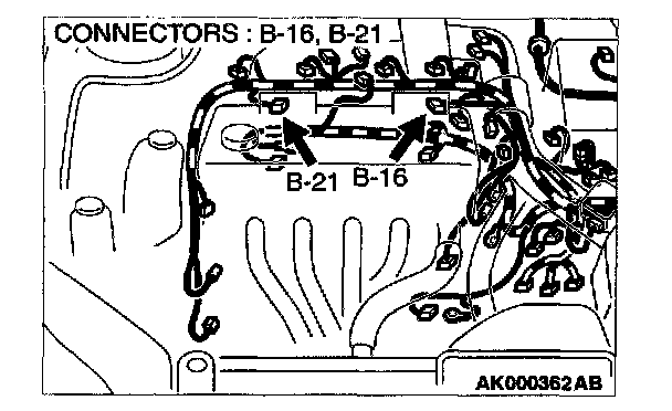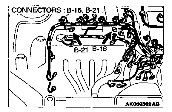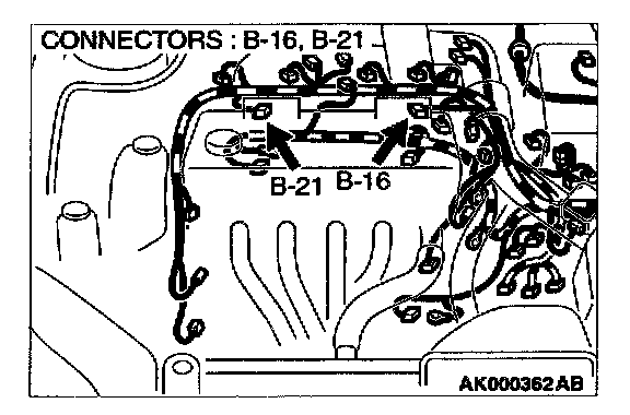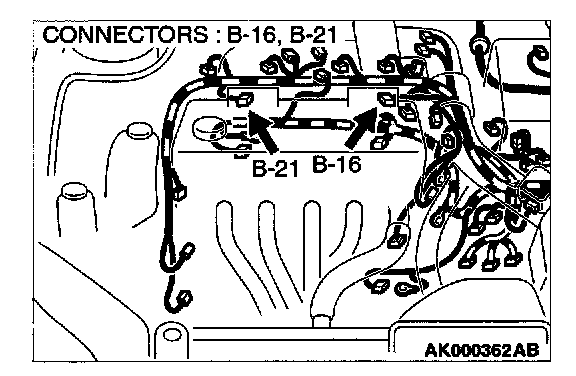 1. Disconnect the connector B-16, B-21 and measure at the harness side.