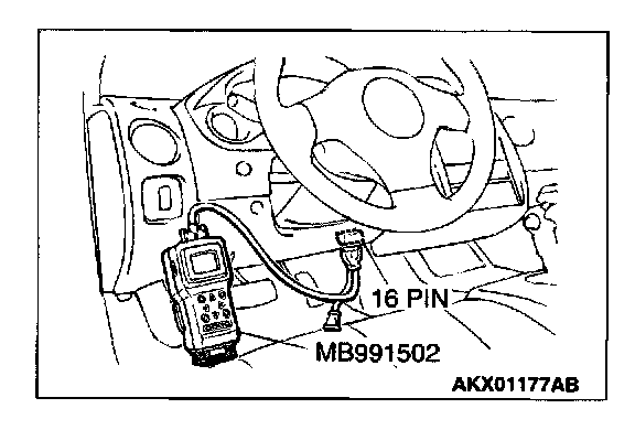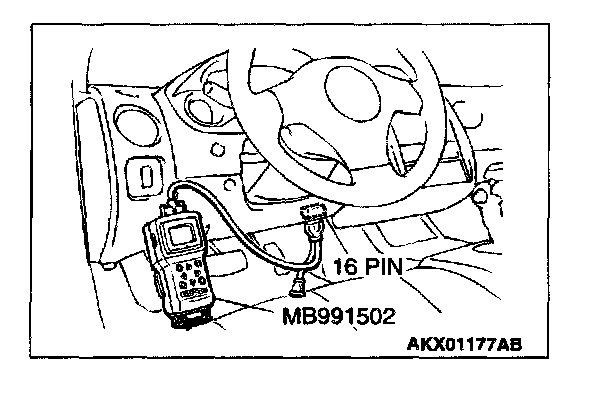 1. Connect scan tool MB991502 to the data link connector.
