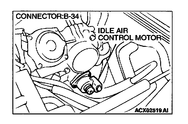 2. Check the operation sound of the IAC motor can be heard after the ignition is switched to the "ON" position (but without starting the engine).