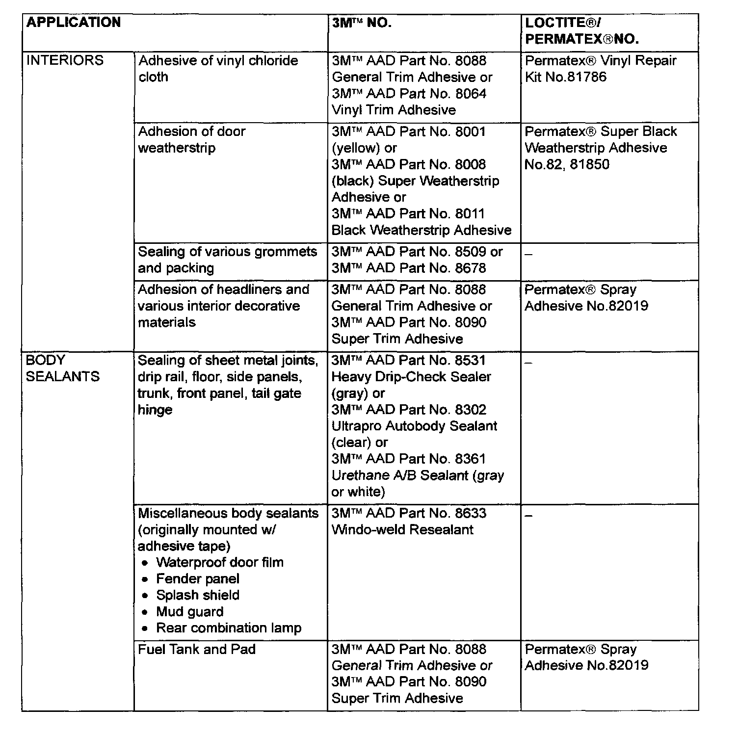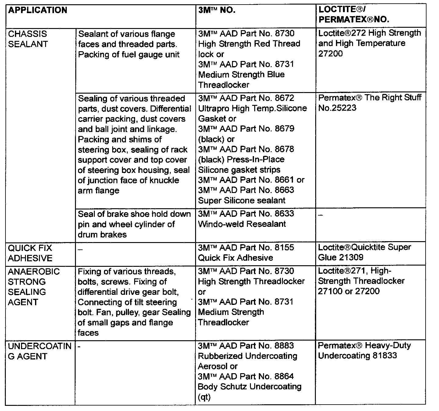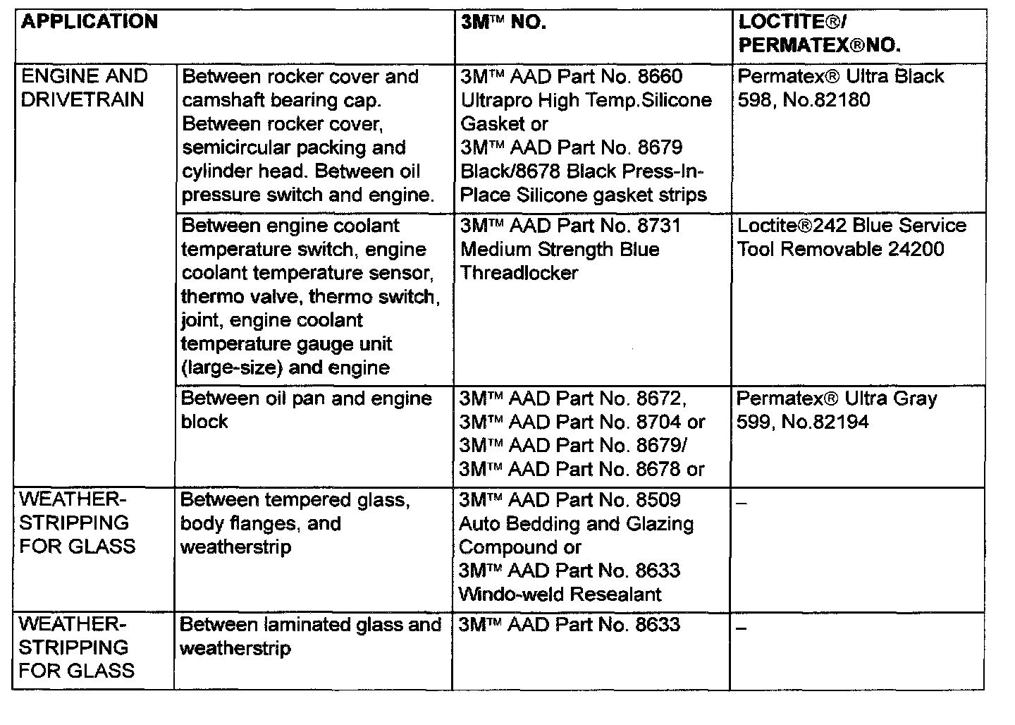 Main Sealant And Adhesive Table Part 1:
