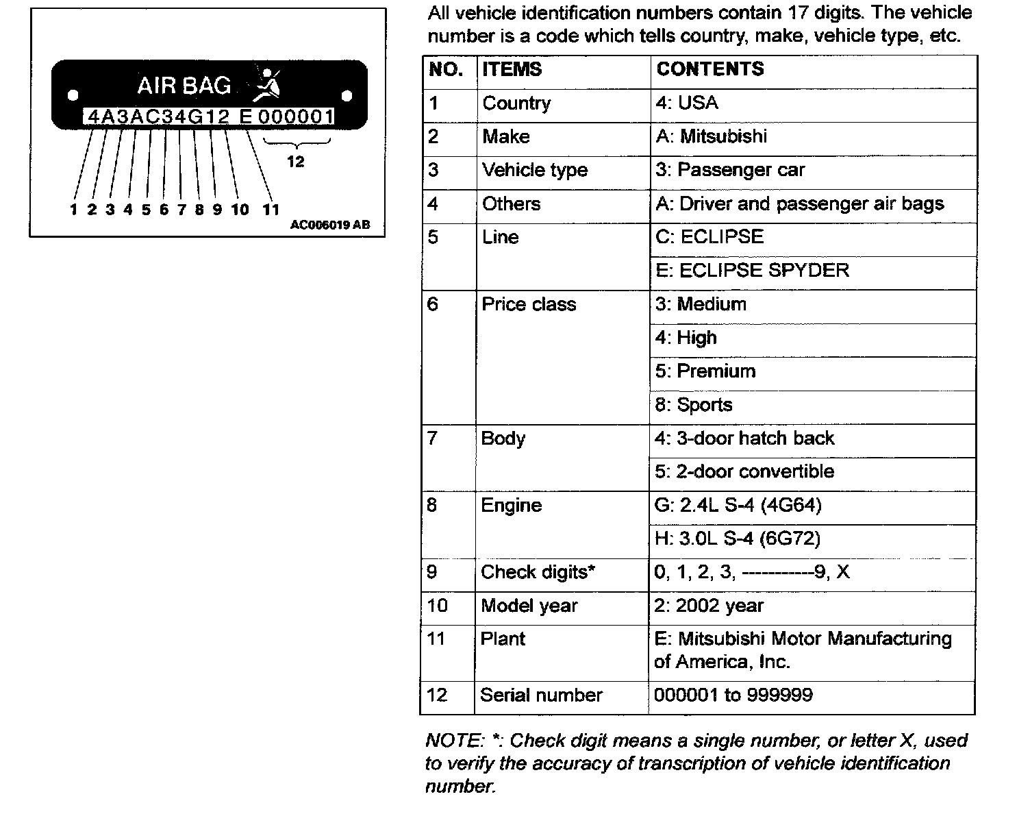 Vehicle Identification Number List - Eclipse: