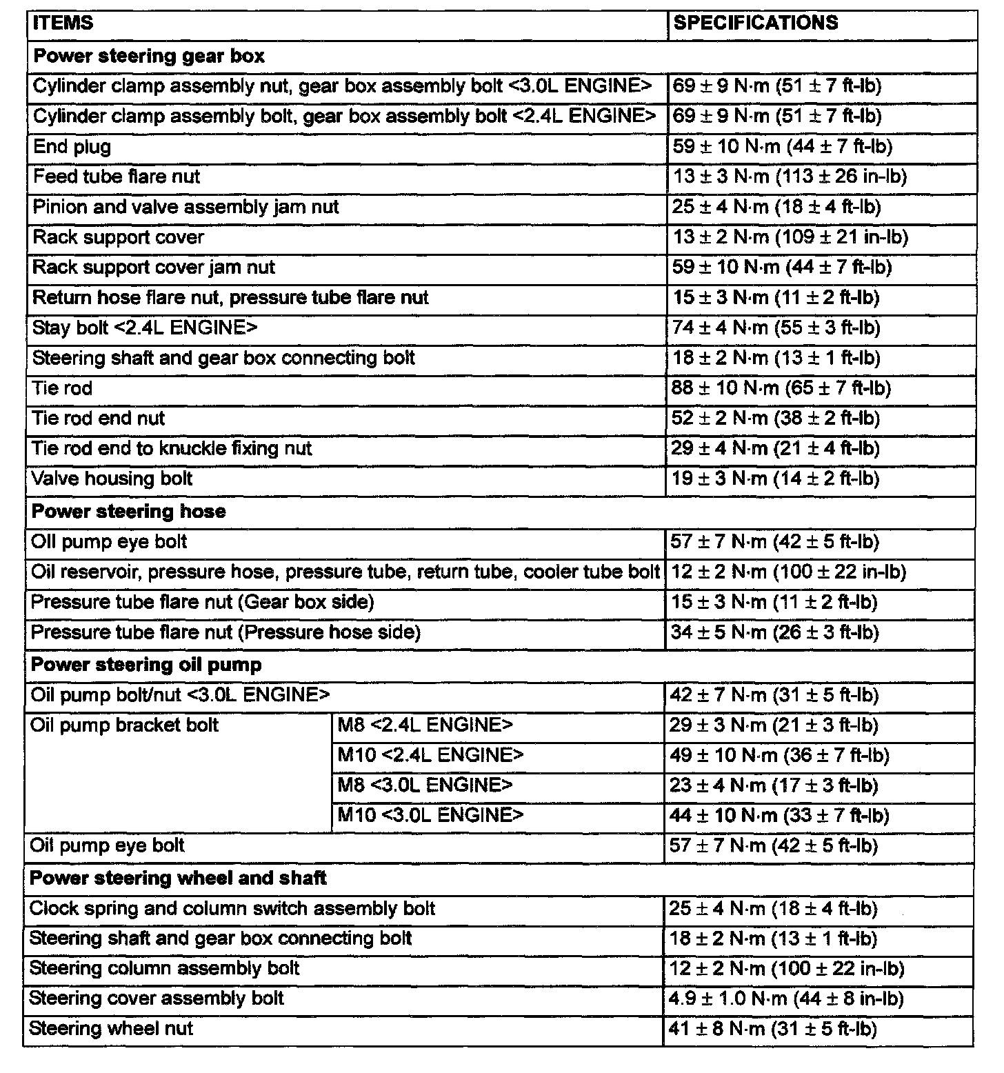 Power Steering Tightening Specifications