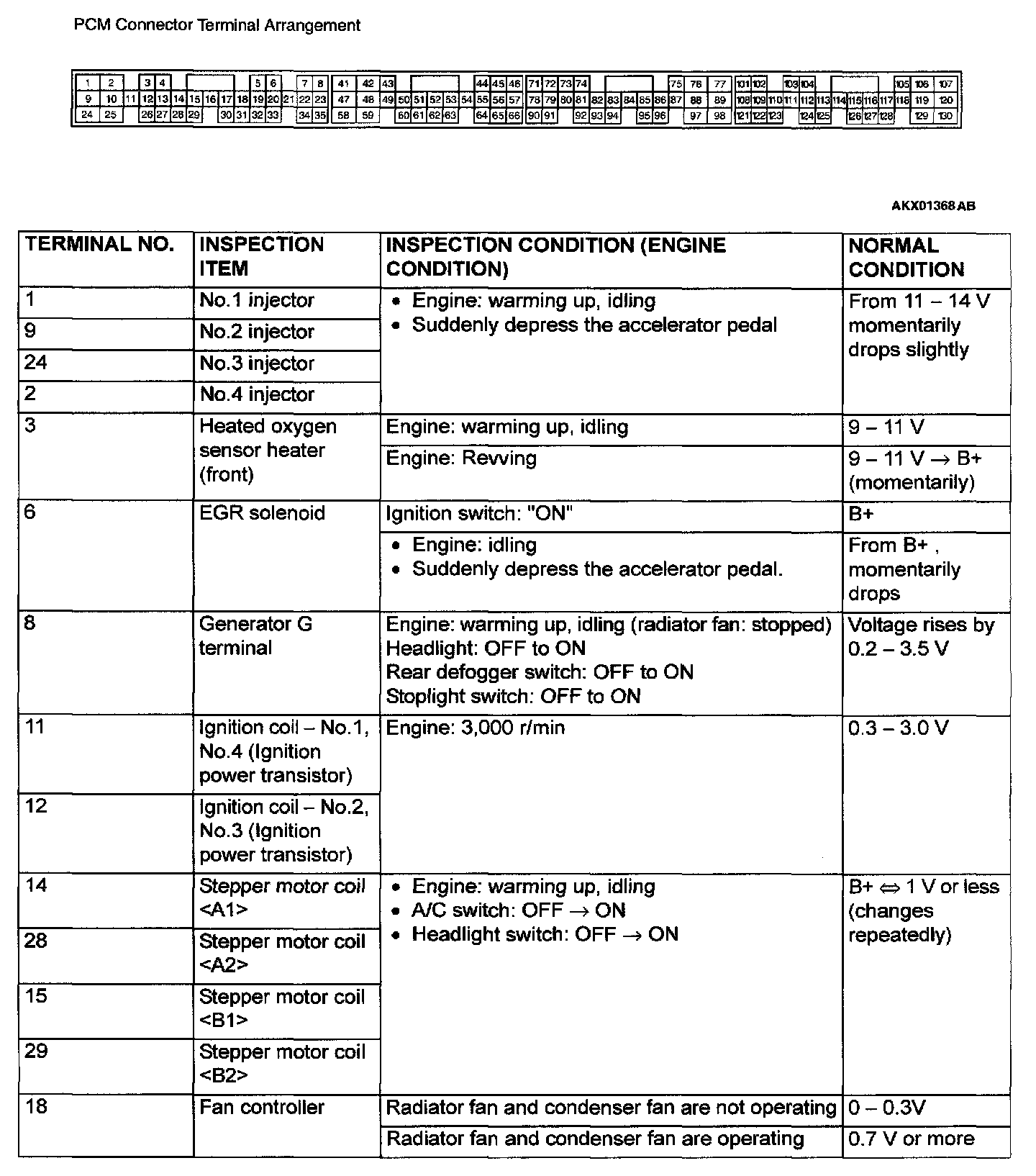 PCM Connector Terminal Arrangement And Terminals Part 1: