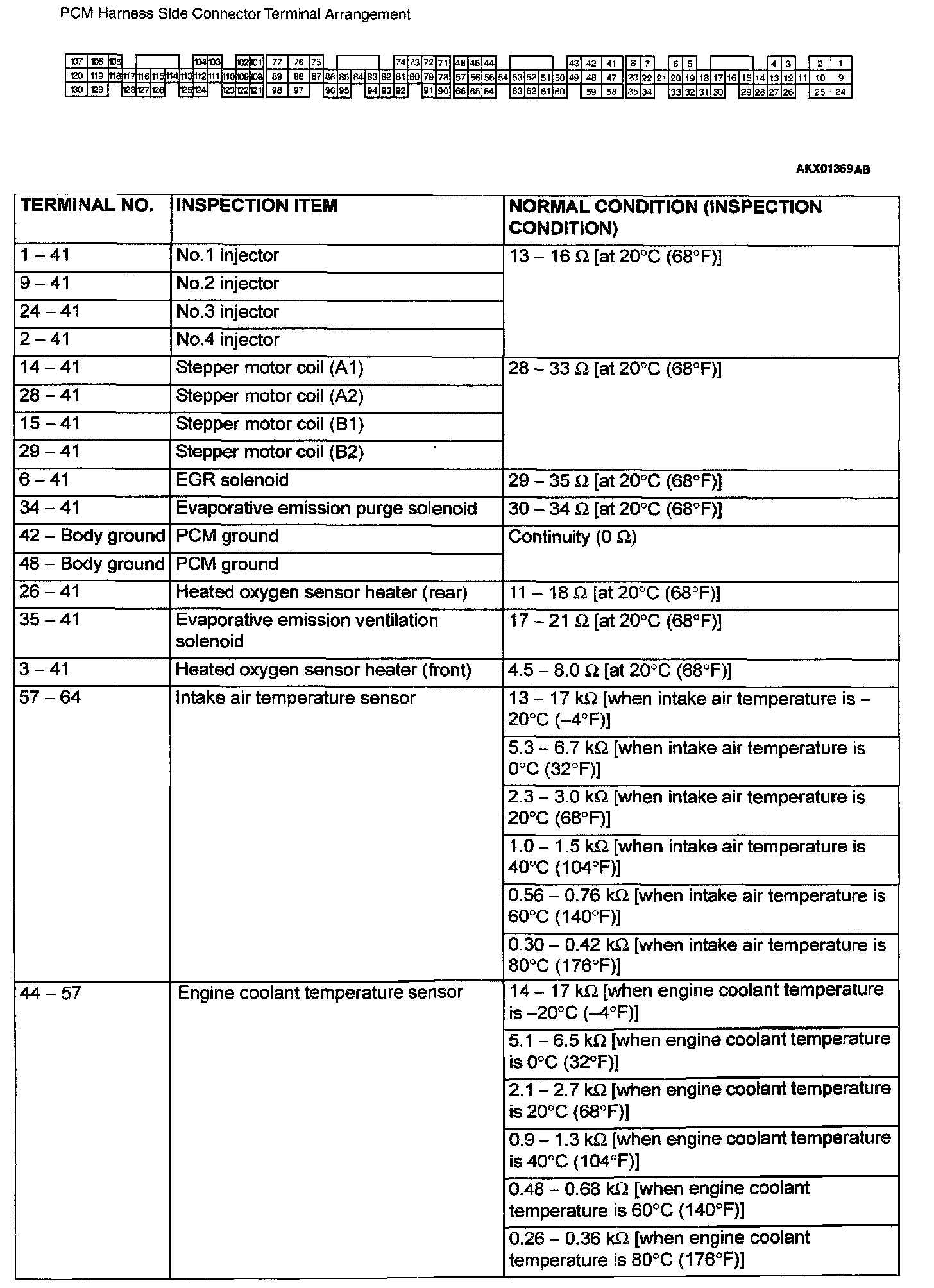 PCM Harness Side Connector Terminal Arrangement And Terminals: