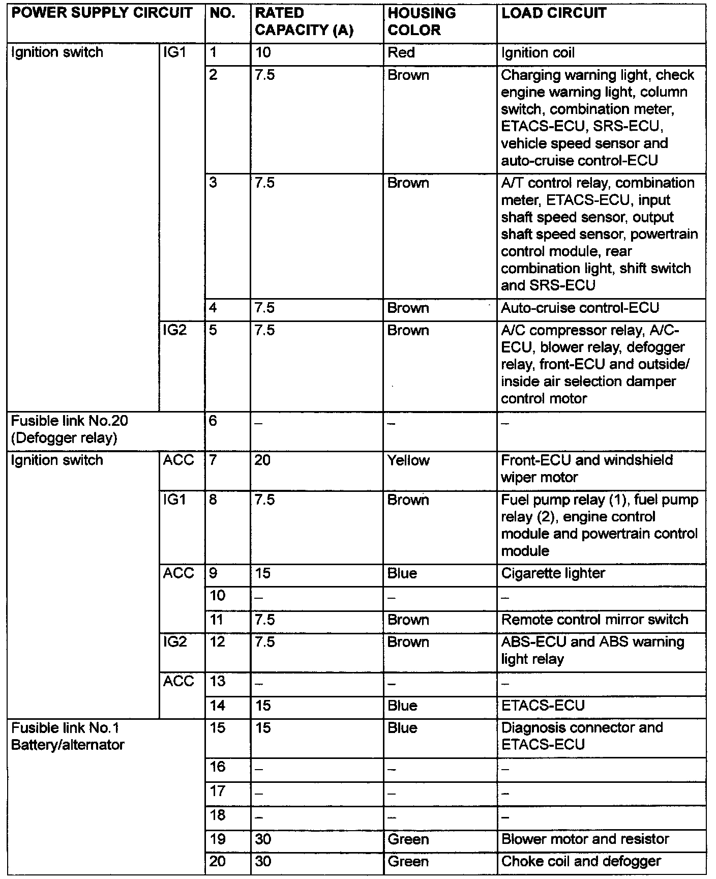 Multi-Purpose Fuse (In Junction Block):