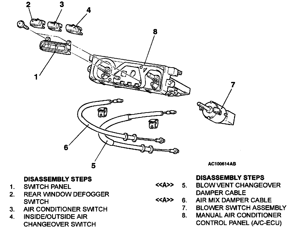 <> BLOW VENT CHANGEOVER DAMPER CABLE AND AIR MIX DAMPER CABLE REMOVAL