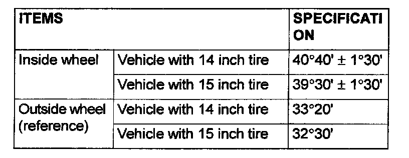 CHECK1. Place the front wheel on a turning radius gauge and measure the steering angle.