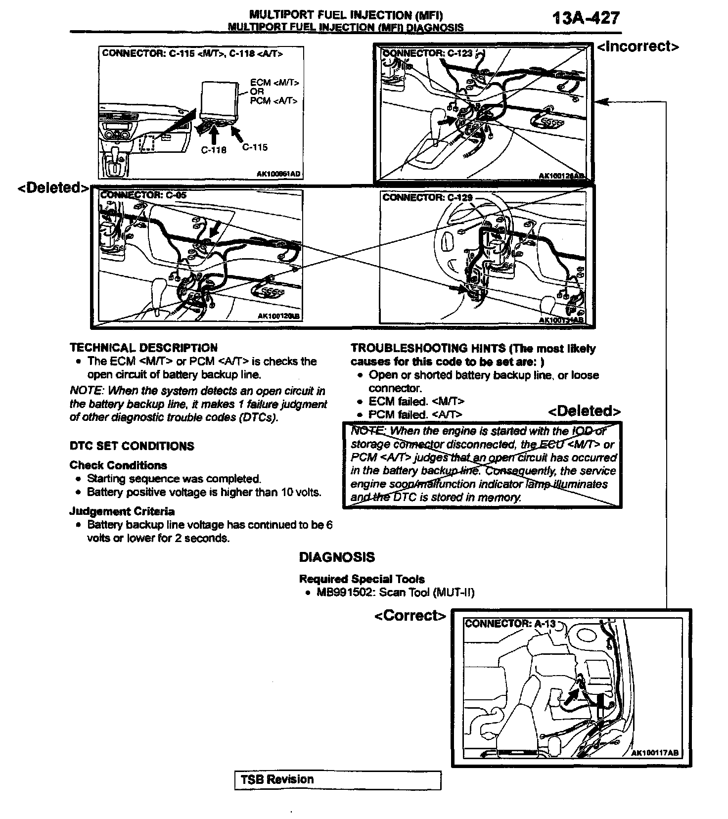 2002 Lancer Service Manual, Volume 1, Pages 13A-436, 427, 429, 501, 502, 507