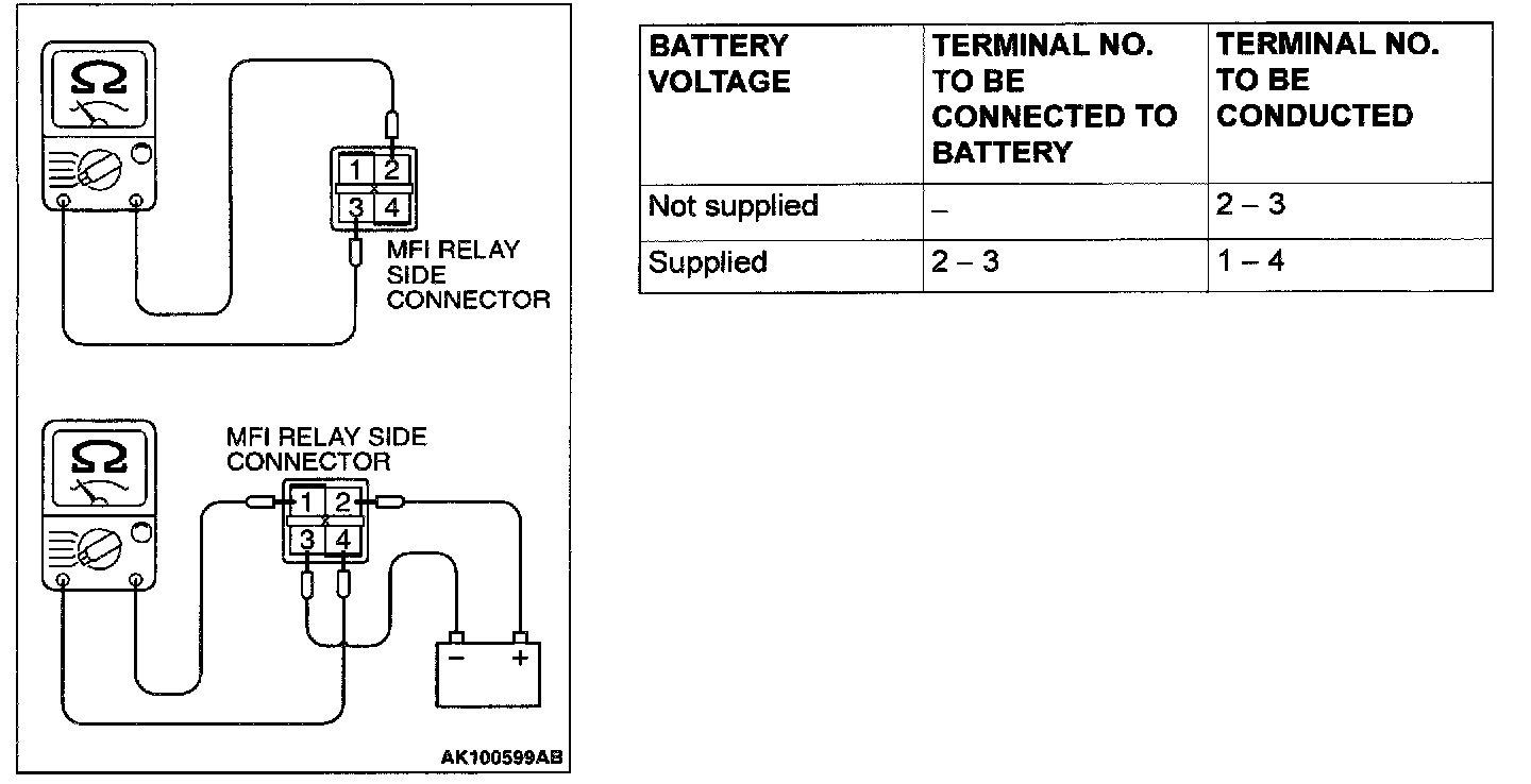 Multiport Fuel Injection (MFI) Relay Continuity Check: