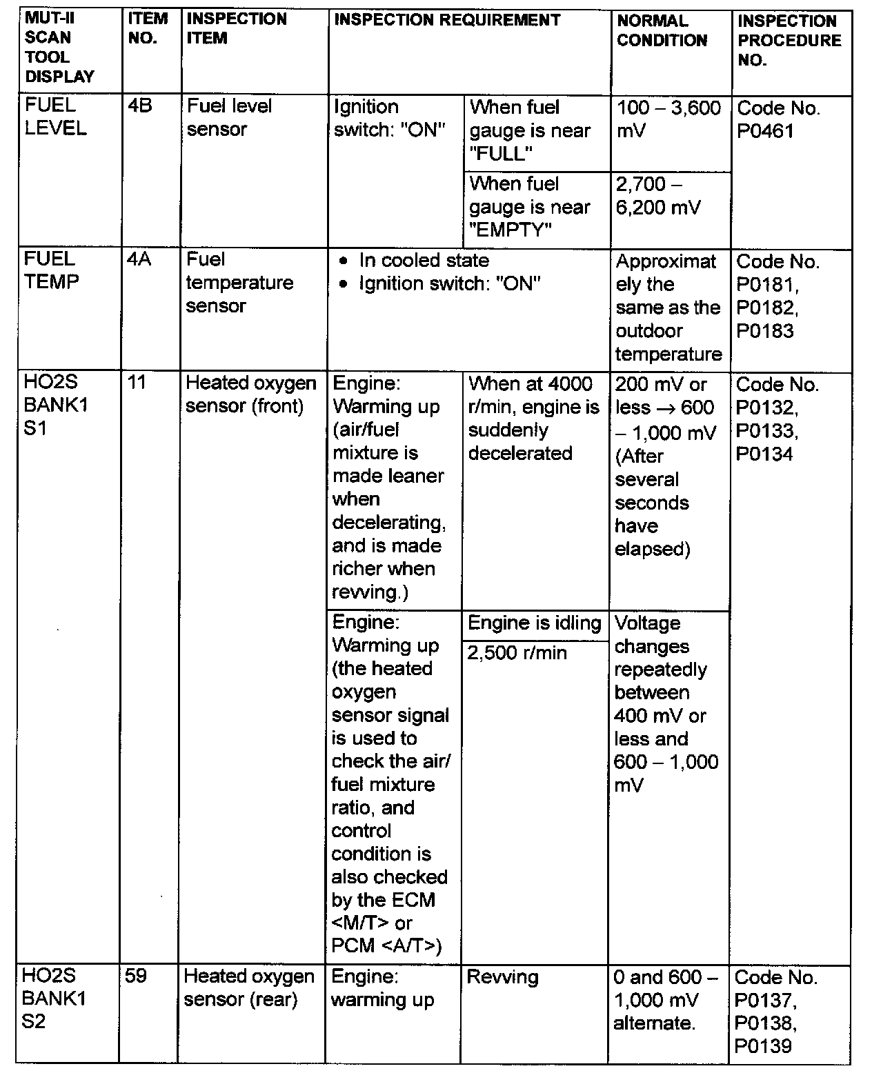 NOTE: *6: GST items. [Data list items consist of MUT-II items and GST items. GST items can be accessed through the use of a general scan tool (GST). When MUT-II (MB991502) is used, MUT-II items appear alphabetically; then, GST items appear alphabetically The black and white characters of the GST items are inverted from the MUT-II items]