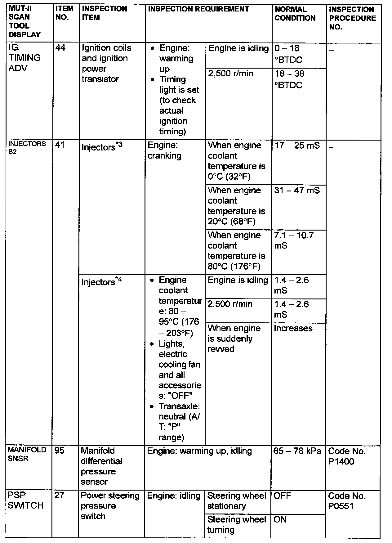 NOTE: *3: The injector drive time represents the time when the cranking speed is at 250 r/min or below when the power supply voltage is 11 volts.