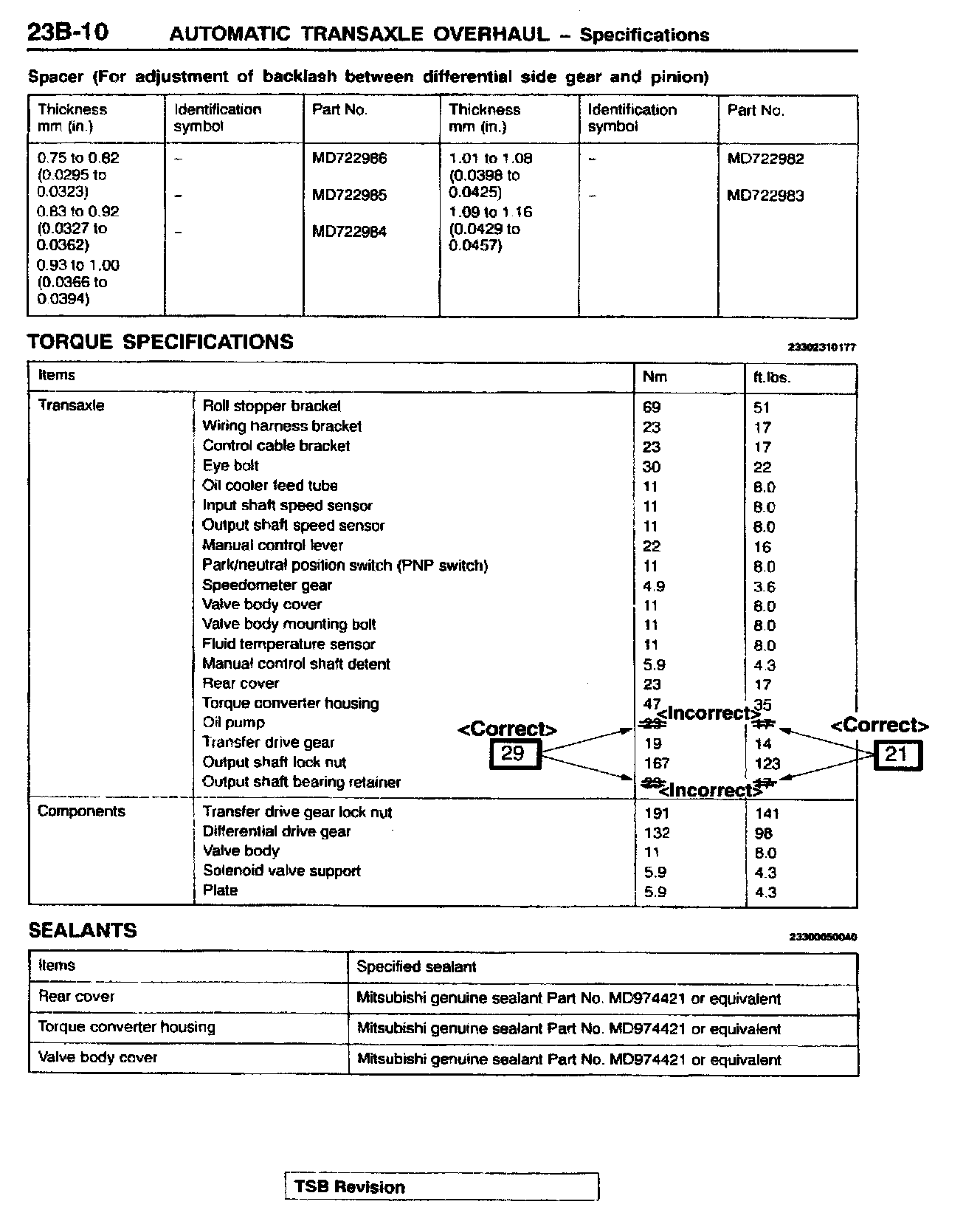 REVISED BOLT TIGHTENING TORQUE VALUES (Diamante, Lancer, Mirage)