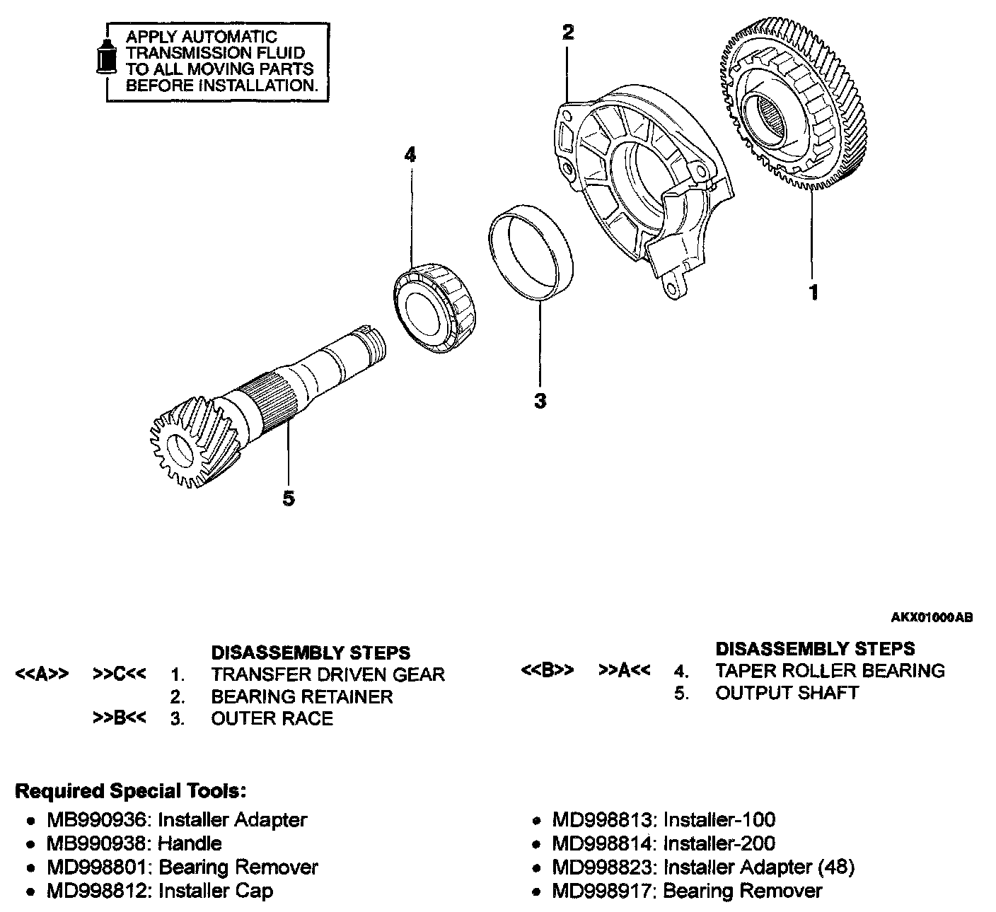 1. Support the transfer driven gear with special tool MD998917, and then set them on the press.