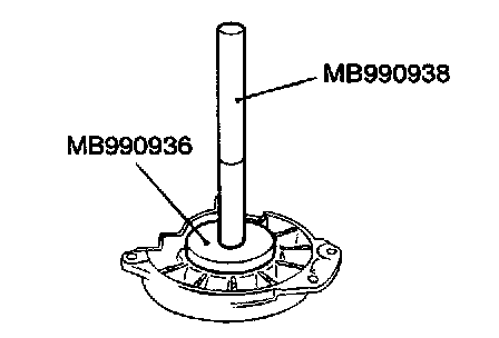 Use the special tools MB990936 and MB990938 to tap the outer race in the bearing retainer.