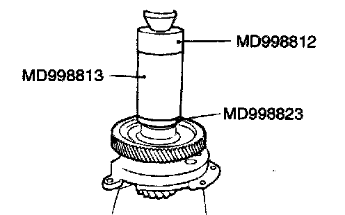2. Using special tools MD998823, MD998812 and MD998813, press install the transfer driven gear.