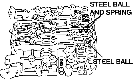 1. Install the two steel balls and two springs to the inside valve body as shown.