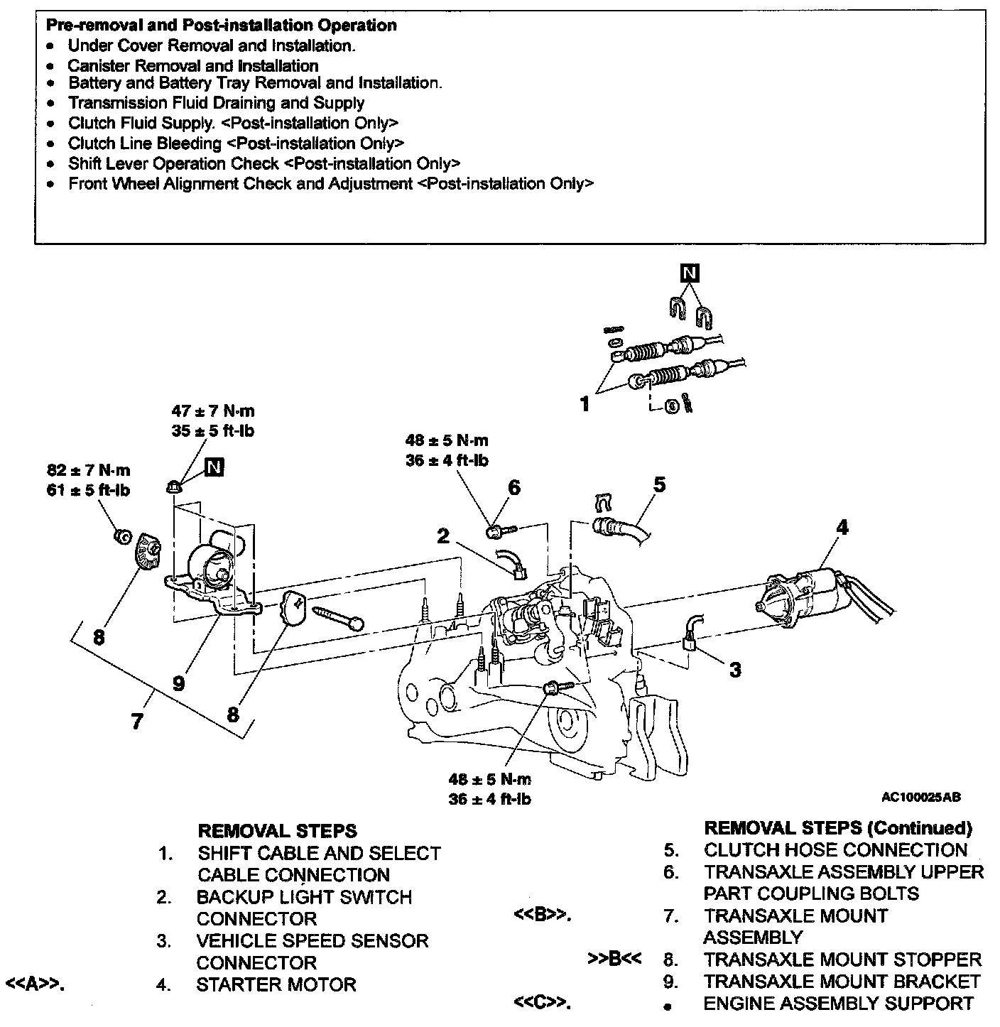 <> TRANSAXLE MOUNT ASSEMBLY REMOVAL
