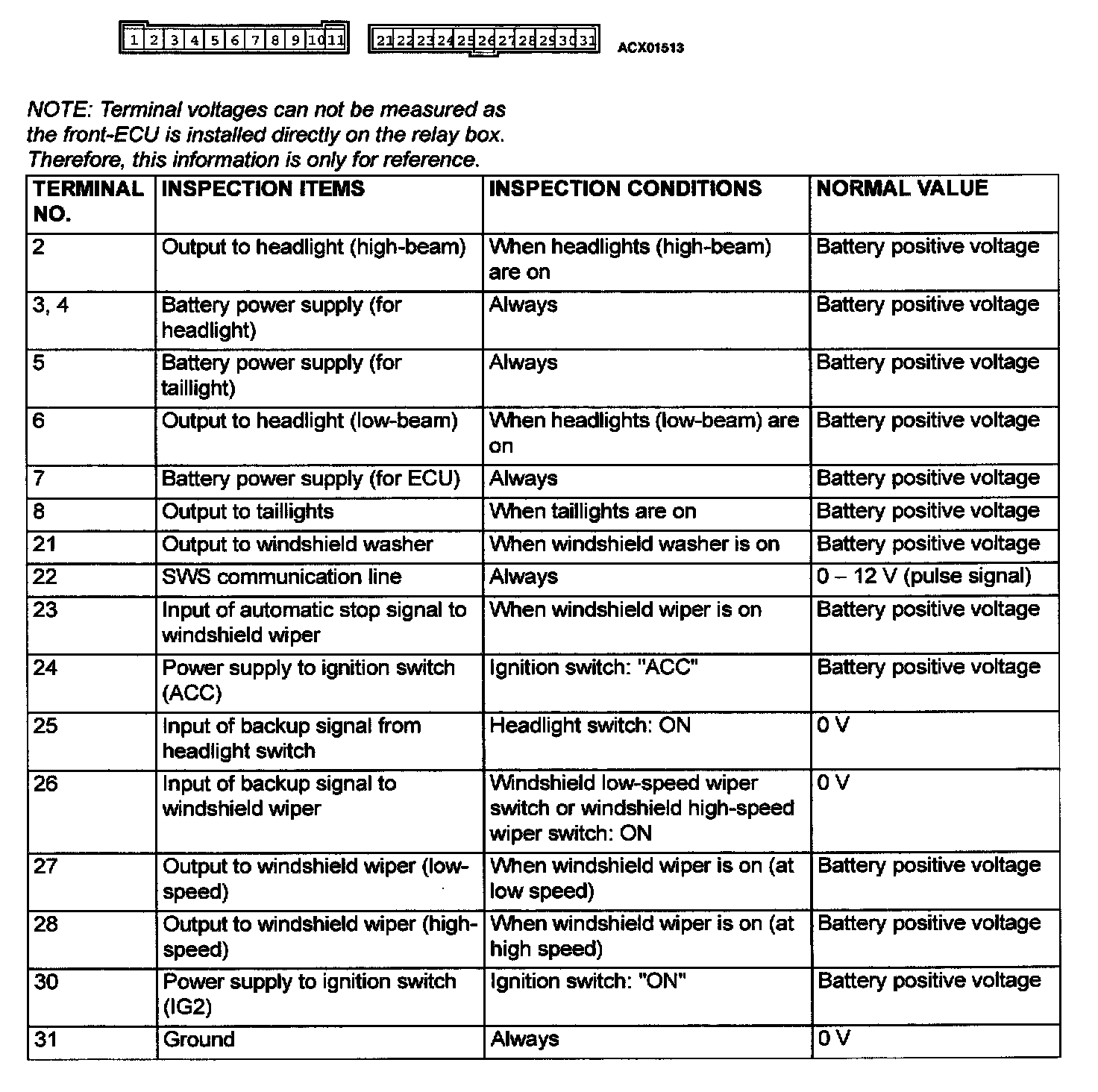 Front-ECU Terminal Arrangement And Terminal No: 2 - 31: