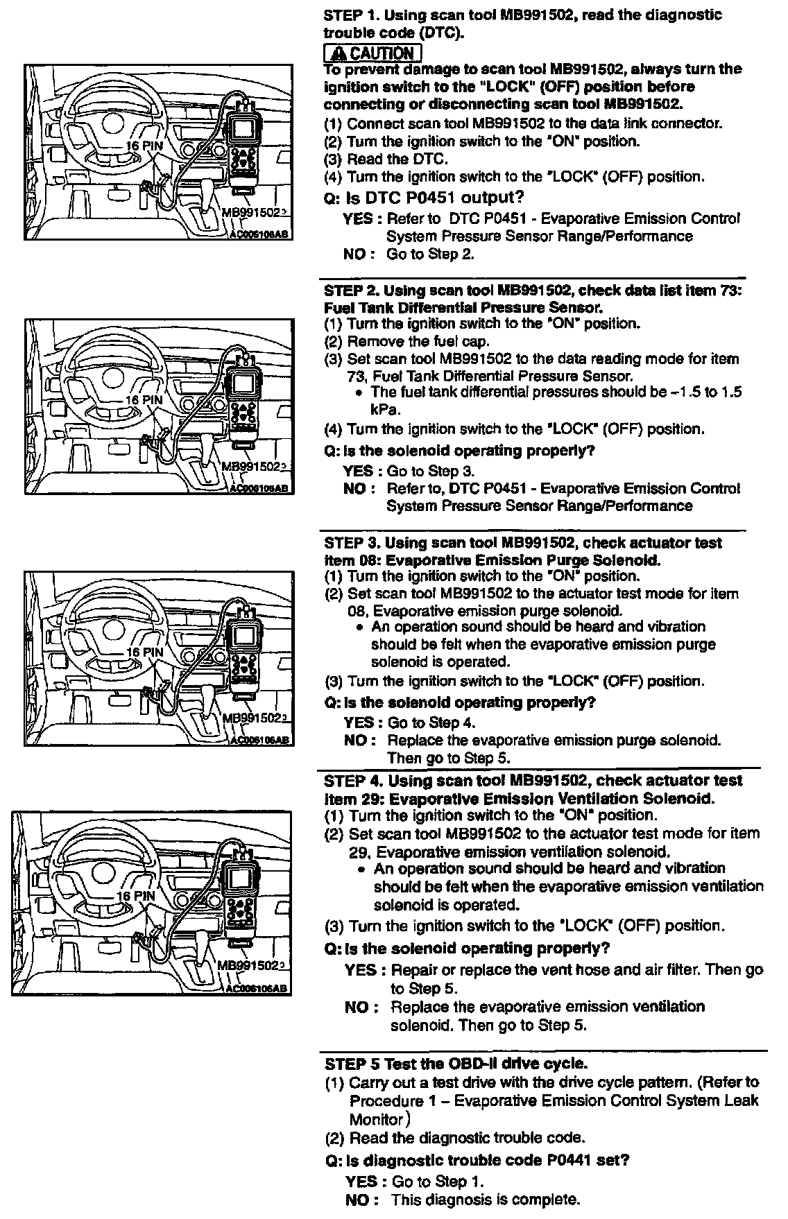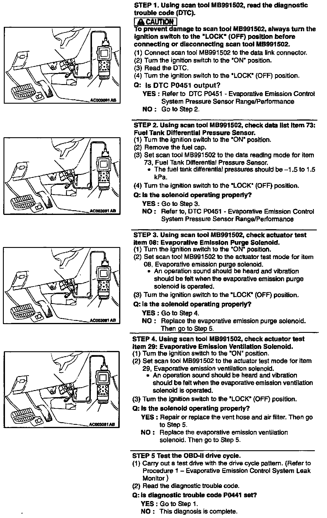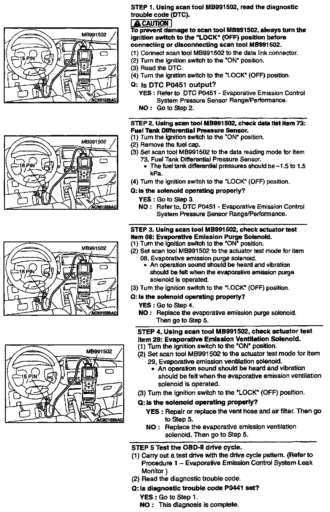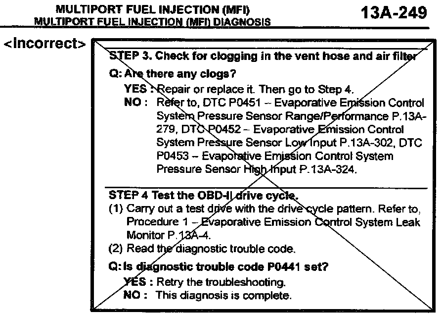 Diagnosis and troubleshooting of Diagnostic Trouble Code P0441, "Evaporative Emission Control Incorrect Purge Flow" are incomplete in the affected service manuals. This bulletin contains complete DTC P0441 diagnosis and troubleshooting procedures for affected vehicles.