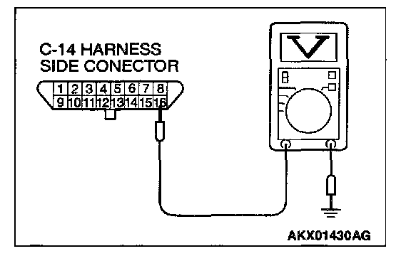 STEP 1. Check the power supply voltage at data link connector C-14.