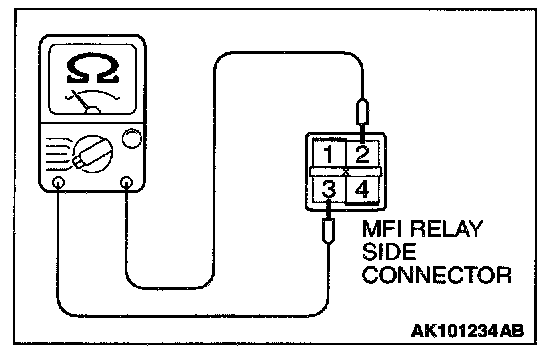 2. Check for continuity between the MFI relay terminals 2 and 3.