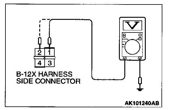 STEP 3. Check the power supply voltage at MFI relay harness side connector B-12X.